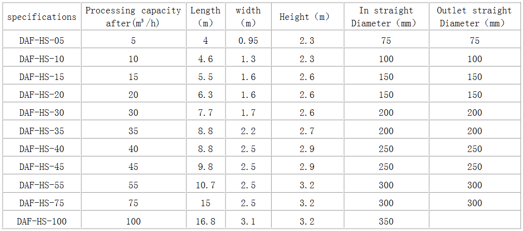 Pressure gas dissolved air floating specification parameters